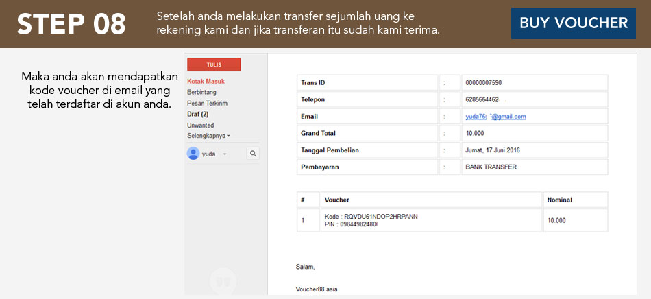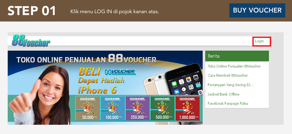 Masukkan Email dan Password. Pastikan email anda aktif, karena Seluruh transaksi di 88voucher menggunakan Email.