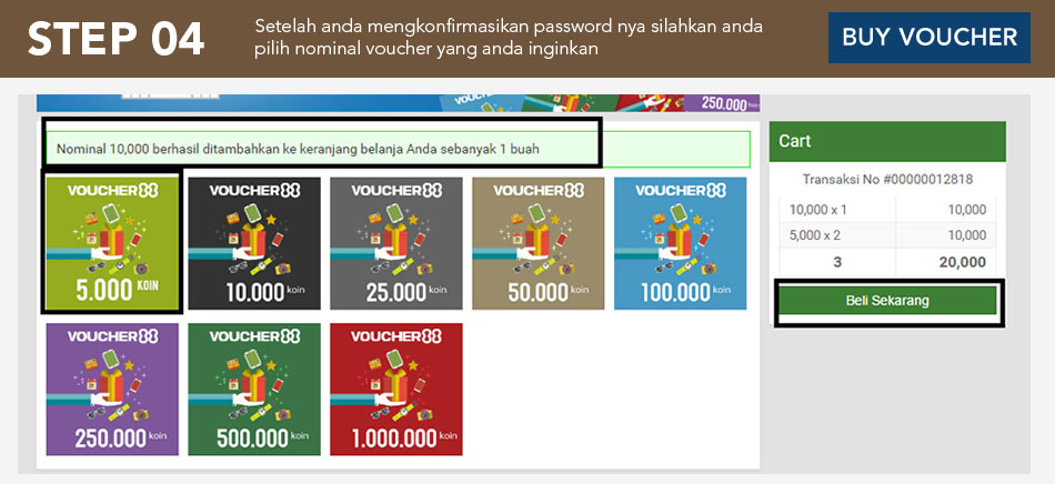 Setelah anda mengkonfirmasikan password, silahkan anda pilih nominal voucher yang anda inginkan